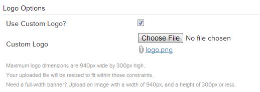 Logo options - allows to upload your logo image or use website name instead.