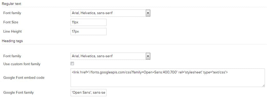 Typography - contains varions settings that allow to tune your website title tags