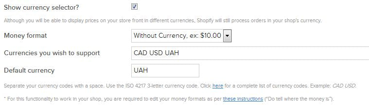Money options - allow to select what currencies you wish to display on your website.