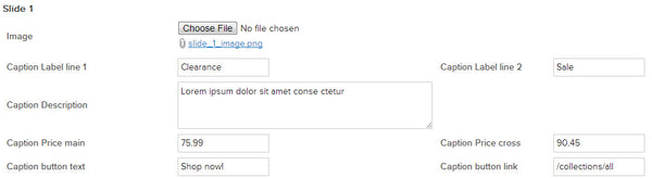 Slider settings - allow to customize home page slider. Upload images and input slider captions. Captions are divided into separate parts that can be modified through the sufficient fields.
