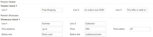Custom blocks setting - allow to input content for custom blocks. Below you can check theme positions map so it would be easy to locate the modules you may want to edit.